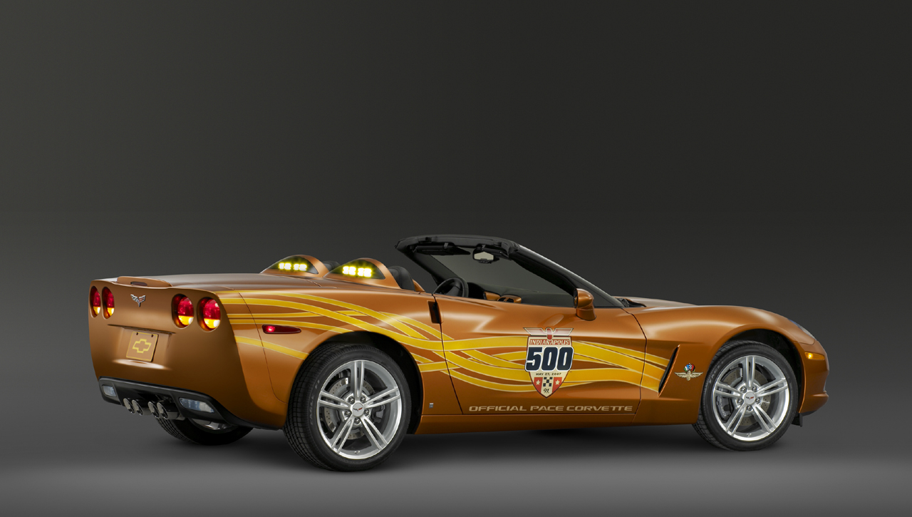 A 2007 Chevrolet Corvette convertible will pace the 91 st running of the Indianapolis 500 on May 27, 2007. As it was selected as the Official Pace Car, Chevrolet will supply several identically prepared and uniquely trimmed Corvette convertibles ñ in new Atomic Orange paint with distinctive gold ribbon graphics ñ that will serve in the official pace duties of the race, as well as supporting activities.