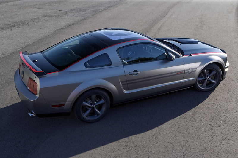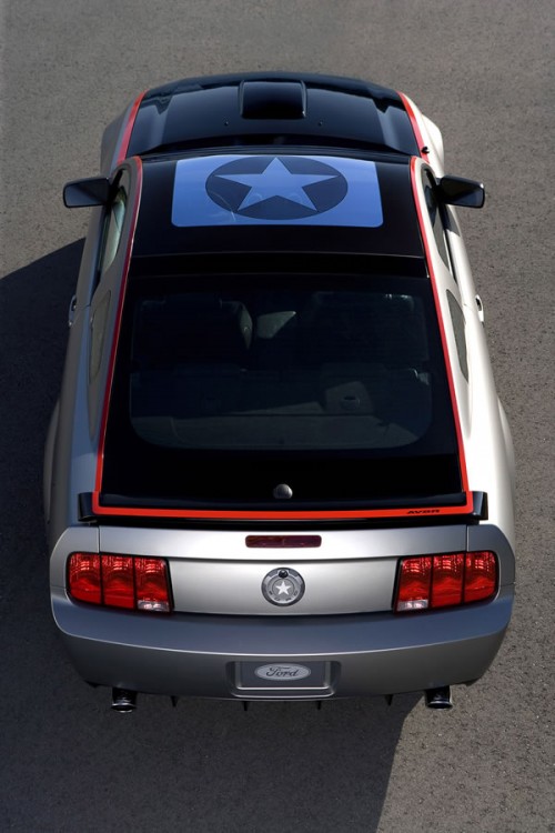 Der auf die rasanten Kunstflieger zugeschnittene Mustang AV8R wurde speziell von Ford Racing entwickelt und durch einen 400 PS starken 4,6L 24V V8 Motor mit Kompressor, angetrieben. Ausgestattet mit Glassdach, speziellen Front und Heckschürzen, Spoiler, Handling Pack, Sportauspuff und Shelby Reifen. Die Farbe – Satin Silber Matte mit schwarzen Hochglanzakzenten, welche sich im Inneren fortsetzen und mit „bomber jacket“ Ledereinlagen abgerundet werden. Dazu gibts ein „Bullitt“ Instrumenten Panel im Alu-Design. Exklusiv gibts auch eine Autogramm-Area wo einige Legenden und Fans der Kunstfliegerstaffel unterschreiben werden, wie z.B. Edsel B. Ford II, Chuck Yeager, Jack Roush, Harrison Ford, John Travolta, Morgan Freeman und Jim Lovell.