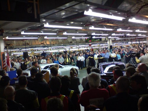 Wie bereits berichtet, lief bereits am 16. März die Produktion des neuen Chevrolet Camaro an. Der glückliche Besitzer des Fahrzeuges mit der VIN 00001 ist Rick Hendrick, welcher diesen Camaro bei der Barrett-Jackson Auktion für 350.000 Dollar ersteigert hat. Im kanadischen Oshawa, wo der Camaro produziert wird, lies er es sich daher nicht neben seinen Camaro persönlich abzuholen. Ein paar Bilder von seinem Fahrzeug und auch von dessen Produktion seht ihr nach dem Klick. Am ersten Tag wurden übrigens 150 Camaros produziert! Ein Video von 5 Serienfahrzeugen, welche zu den Händlern unterwegs sind, seht ihr ebenso nach dem Klick.