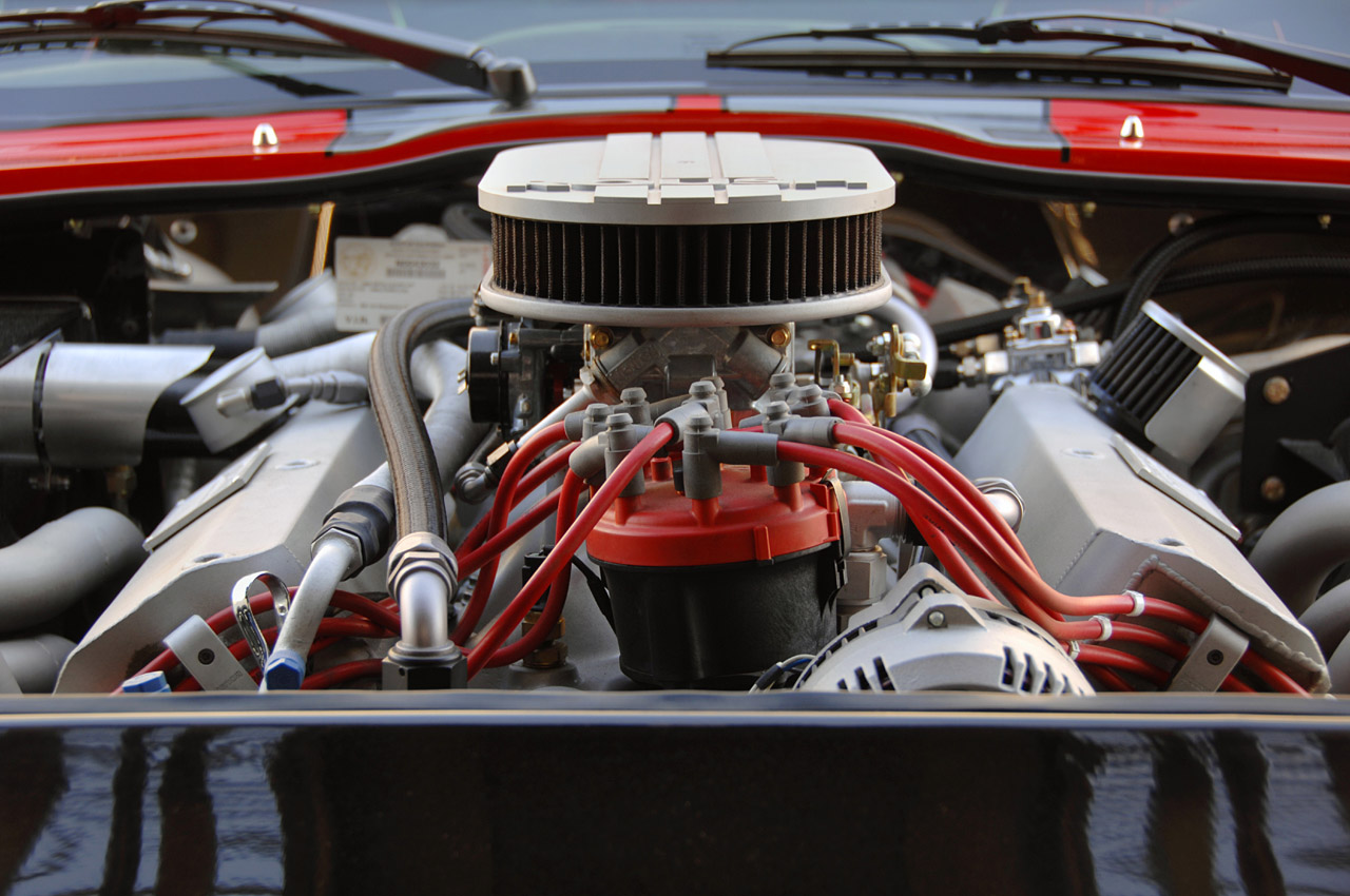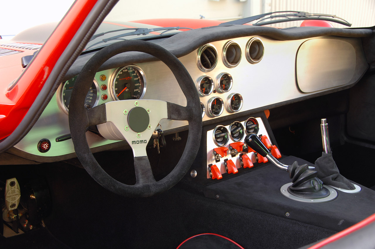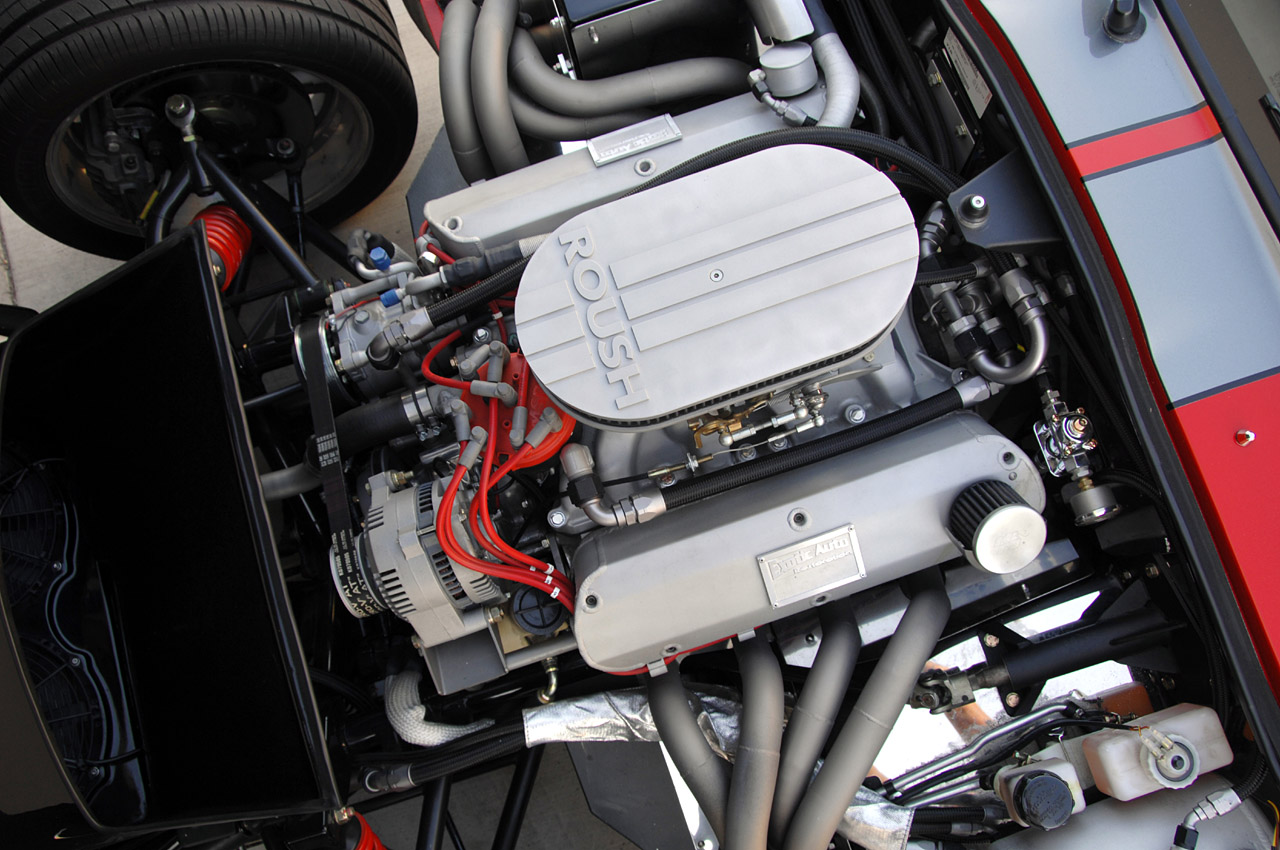 Customers can choose from a variety of motors based on the Ford 351 Windsor block. Powering this particular Daytona Coupe Le Mans is a Roush 402R V8 producing 530 horsepower and 515 lb-ft torque mated to a Tremec T56 6-speed transmission.