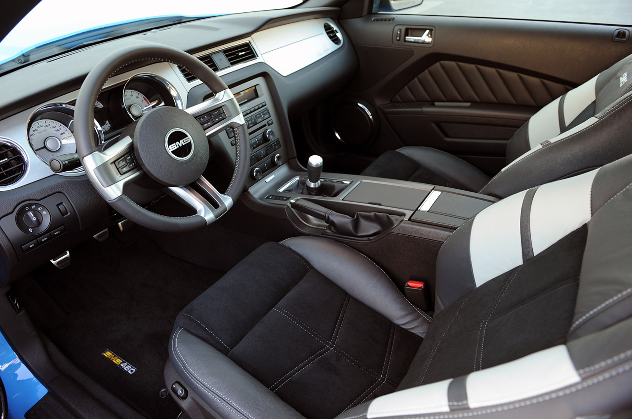 The SMS 460 Mustang offers a 4.6 liter V8 engine featuring a minimum 470 hp and 427 ft-lb of torque, while the even more powerful SMS 460X Mustang engine with all new internal and headwork delivers 655 hp and 600 ft-lb out of the enlarged 5.0 liter V8. Both use the new (patent pending) SMS 296 Supercharger presented last week at the New York International Auto Show. Transmission options are a 5-speed automatic or 5-speed manual on the 460 or a 6-speed SMST manual on the top of the line 460X.